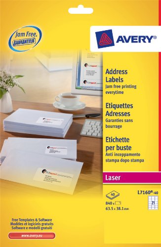 Avery L7160-40 Laser Address Labels (40 Sheets, 840 labels) - Jam free guaranteed for a perfect result each time you print.