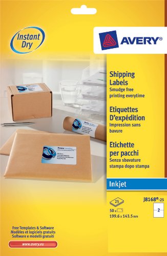![Avery Quick DRY Addressing Labels Inkjet 2 per Sheet 199.6x143.5mm White Ref J8168-25 [50 Labels]](http://ecx.images-amazon.com/images/I/41A%2BDUXjDNL.jpg)