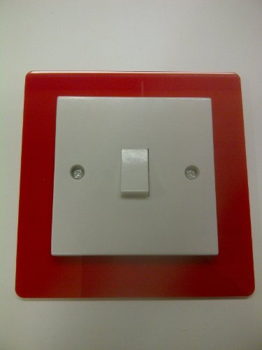 Nest Plastics t/a Wholesale POS Co - SINGLE LIGHT SWITCH SURROUND COLOURED ACRYLIC DECORATIVE PERSPEX FINGER PLATE Red - THIS OFFER IS FOR 1 X SINGLE LIGHT SWITCH DECORATIVE RED 440 COLOURED ACRYLIC SURROUND, THESE SURROUNDS ARE LASER CUT AT OUR OWN UK FACTORY AND FINISHED WITH A SUPER SMOOTH POLISHED FINISH ALL ROUND