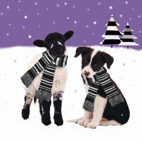 What's new on 'Humbug' Lamb Sheep & Border Collie puppy dog 10 pack small square Christmas cards - See Details :