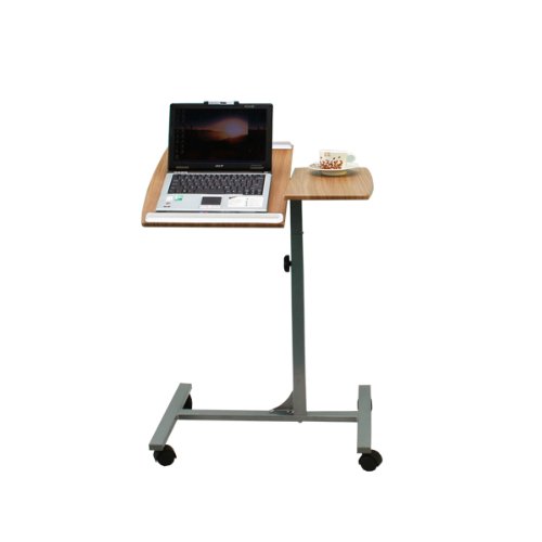 - Fully adjustable laptop table stand. Height is completely adjustable as well as the tilt angle of the two table sections also; easy to do with locking castors