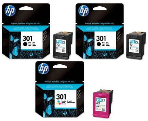 2x HP 301 Original Black & 1x Colour Printer Ink Cartridges For use with HP Deskjet 3055A - 2x HP 301 Original Black & 1x Colour Printer Ink Cartridges For use with HP Deskjet 3055A