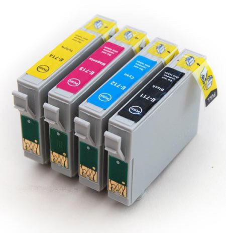 4 x COMPATIBLE Printer Ink Cartridges T0715 for Epson S20 S21 SX105 SX110 SX115 SX200 SX205 SX210 SX215 SX218 SX400FW SX405 SX410 SX415 SX515W SX600FW SX610FW D120 D78 D92 DX4000 DX4050 DX4400 DX4450 DX5000 DX5050 DX6000 DX6050 DX7000F DX7400 DX7450 DX8400 DX7450 DX9400 DX9400F B40W BX300F BX310FN BX600FW BX610FW. E-715 / T-715 - Equivalent to T0715 - 4 Compatible Ink Cartridges for use with the following Epson printers: S20 S21 SX105 SX110 SX115 SX200 SX205 SX210 SX215 SX218 SX400FW SX405 SX410 SX415 SX515W SX600FW SX610FW D120 D78 D92 DX4000 DX4050 DX4400 DX4450 DX5000 DX5050 DX6000 DX6050 DX7000F DX7400 DX7450 DX8400 DX7450 DX9400 DX9400F B40W BX300F BX310FN BX600FW BX610FW. Supplied with a VAT Receipt & covered by our 100% No Quibble Guarantee. In the unlikely event the cartridges are faulty or if the quality is not