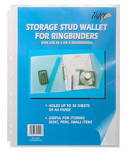 A4 Clear Plastic Stud Document Wallet For Ring Binder (Pack of 5) - A4 size ringbinder press stud closure document wallet (302 x 240mm).Holds up to 30 sheets of A4 paper. Ideal for storing pens, CD's Booklets and other slim items. 200 micron clear polypropylene. Pack of 5