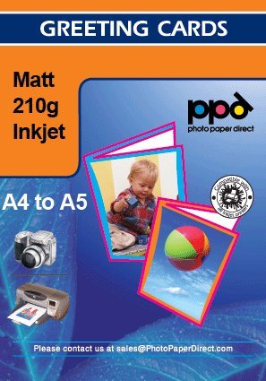 A4 Inkjet Greeting Card Paper (MATT) x 50 sheets. With Envelopes Pack - High quality 210gsm Inkjet A4 double sided matt greeting card paper heavy weight which is scored to fold to A5. The paper is double sided matt on both sides. Express your creativity by printing your own high quality looking greeting cards complete with a personalised message on a dedicated greeting card paper. Simply type the greeting message using any word processor and print the text with an optional picture onto the greeting card paper for results which look better than the real thing. The p