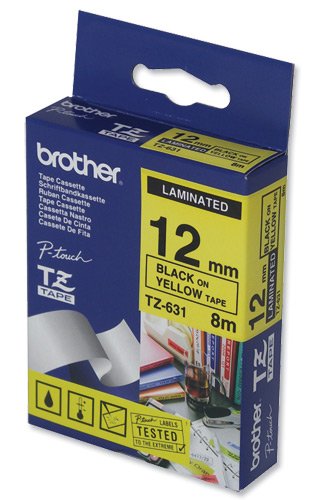 Brother P-touch TZ Label Tape 12mmx8m Black on Yellow Ref TZ631 - 12MM BLACK ON YELLOW P-TOUCH TAPE
