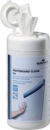 Durable Whiteboard Cleaning Wipes Tub 100 - Handy dispenser tub of 100 moistened whiteboard cleaning wipes Suitable for use on all standard whiteboards Removes grease, dirt, ghosting stains, and dry wipe marker pen Non-flammable Alcohol free Environmentally friendly Tub 100