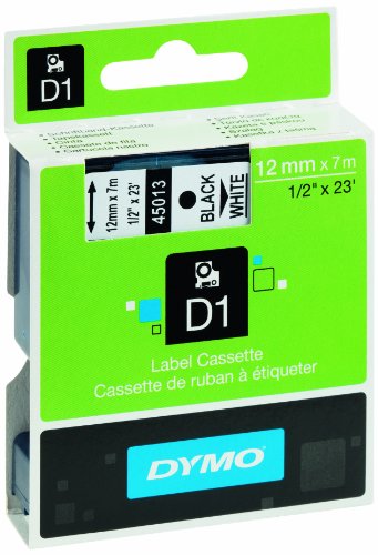 Dymo LabelManager 12mm D1 Tape - Black/White - Dymo Tape 45013 12mmx7 Metres. Suitable for use in the following machines: Dymo Pocket 1000 / 2000 / 3500 / 5000 / 5500 / LP200 / LP300 / LM100 / LM200 & LM300. Colour - Black on White ES45013