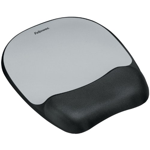 Fellowes Memory Foam Mouse Pad / Wrist Support - Silver Streak